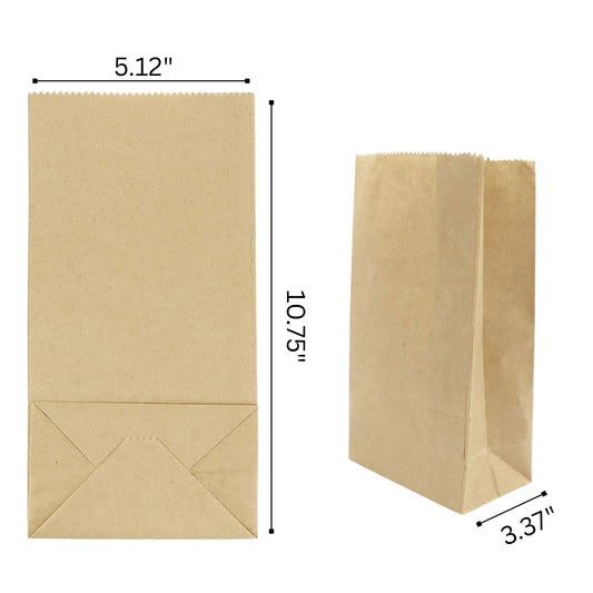 Brown Paper Lunch Bags, Size 5.125" x 3.375" x 10.75": 40 Bags