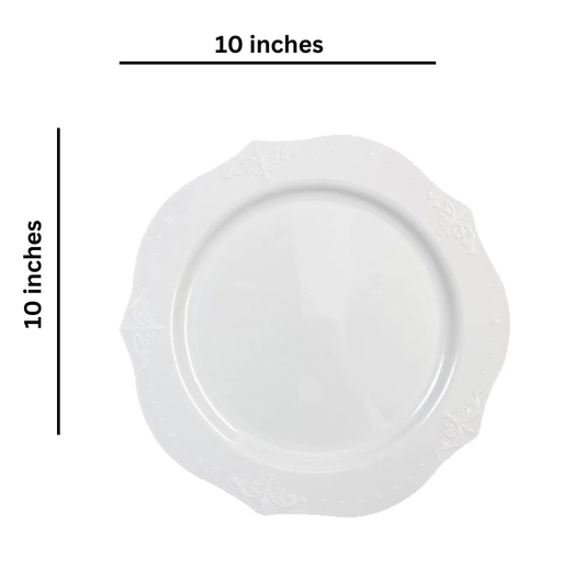 *BUY BULK* Antique collection Plastic Dinner Plates White 10" 20CT