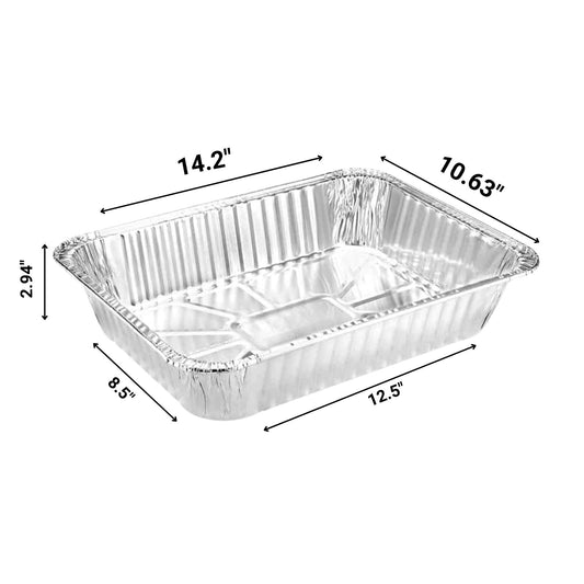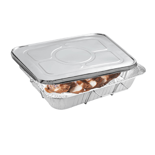 Cook, serve, and store with Disposable Aluminum Pans & Lids. Ideal for baking, roasting, catering, and meal prep. Durable, oven-safe, and disposable with secure-fitting lids for easy transport and storage. Perfect for parties, restaurants, and food service.