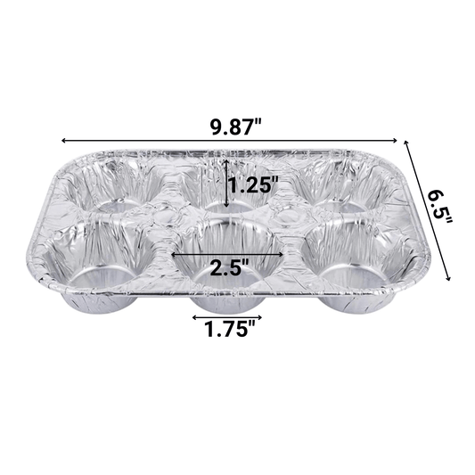 Disposable Aluminum Muffin Foil Pan 6 Cup Section