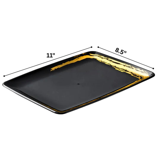 Whisk 8" x 11" Black Gold Accent Rectangle Serving Plastic Disposable Tray