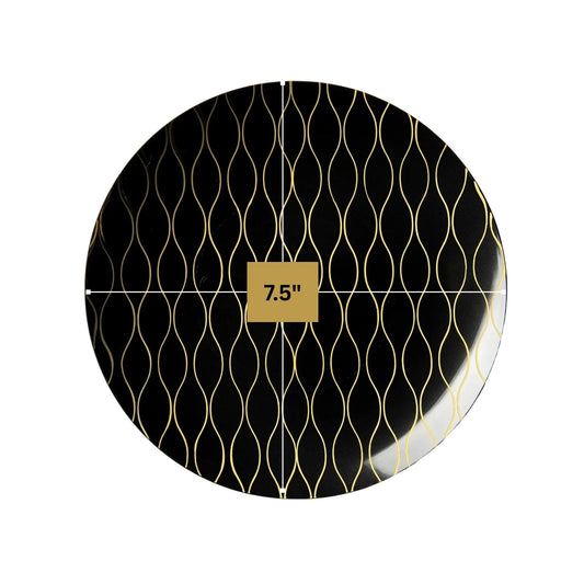 Gold Stroke 7.5″ Black Appetizer/Dessert Plates Plastic