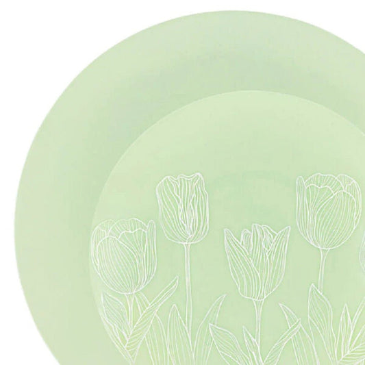 Combo Set Tulip 10.25" & 7.5" Mint Green Round Plastic Dinnerware Set