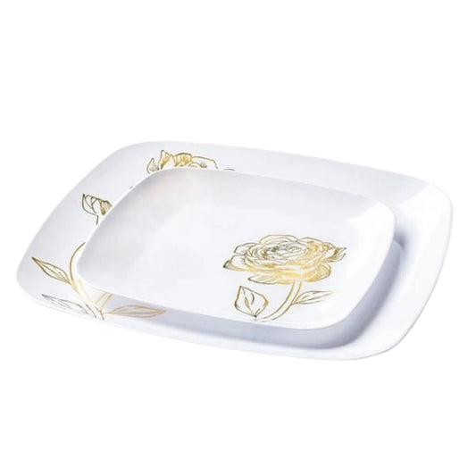10.25"&7.25" White and Gold Square Disposable Plastic Plates COMBO Set-Peony