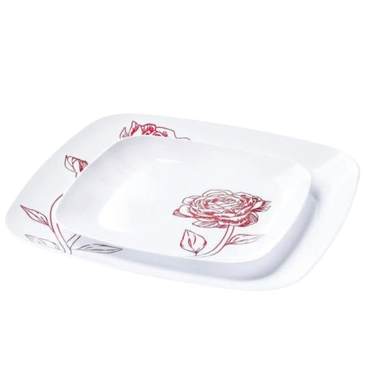 10.25"&7.25" White and Burgundy Square Disposable Plastic Plates COMBO Set-Peony
