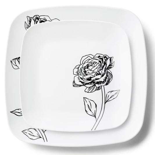 COMBO SET Peony 10.25" & 7.25" White and Black Square Plastic Dinnerware Set