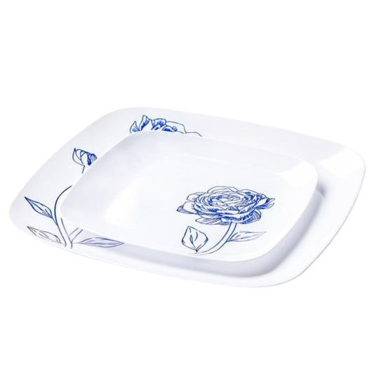10.25"&7.25" White and Blue Square Disposable Plastic Plates COMBO Set-Peony