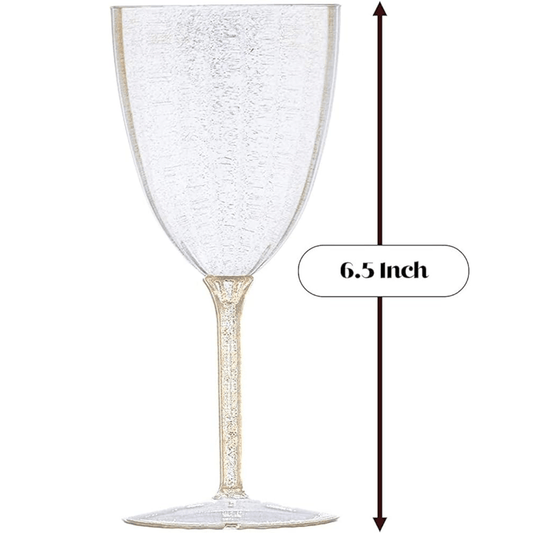 Gold Glitter Disposable Plastic Wine Glasses Goblet 7 oz 8CT