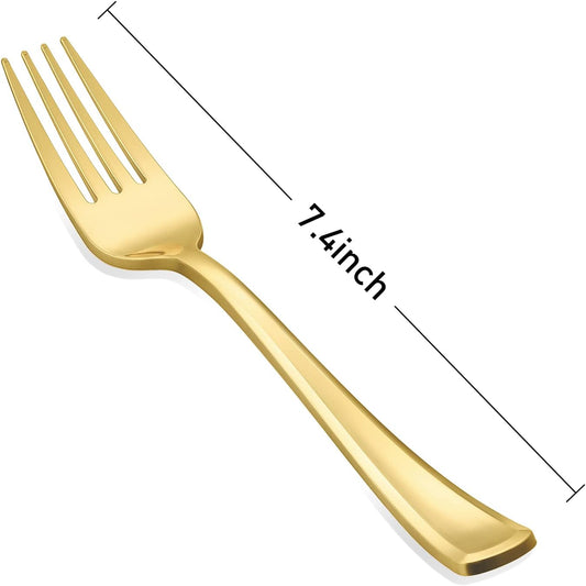 Cutlery Silverware Extra Heavyweight Disposable Flatware Forks Gold
