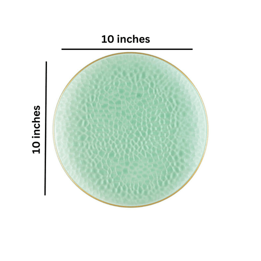 Organic Hammered 10" Green with Gold Rim Plastic Disposable Dinner Plate