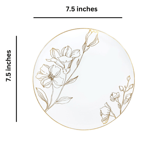 Spring 7.5" White & Gold Plastic Appetizer/Dessert Plate 10 Pack