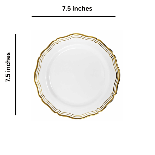 Aristocrat 7.5" White & Gold Plastic Dessert Plate 10 Pack