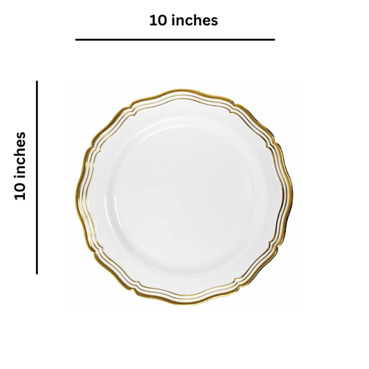 Gold Stroke 10″ White Dinner Plates Plastic