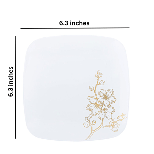 Gold Buds Collection 7.5" White & Gold Square Appetizer/Dessert Plates