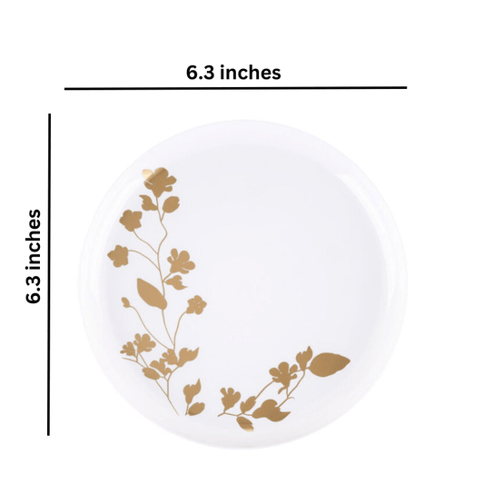 Garden Collection 6.3" White & Gold Appetizer/Dessert Plates