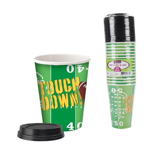 Touch-Down Sports 9oz Paper Cups with Black Dome Lids:16CT