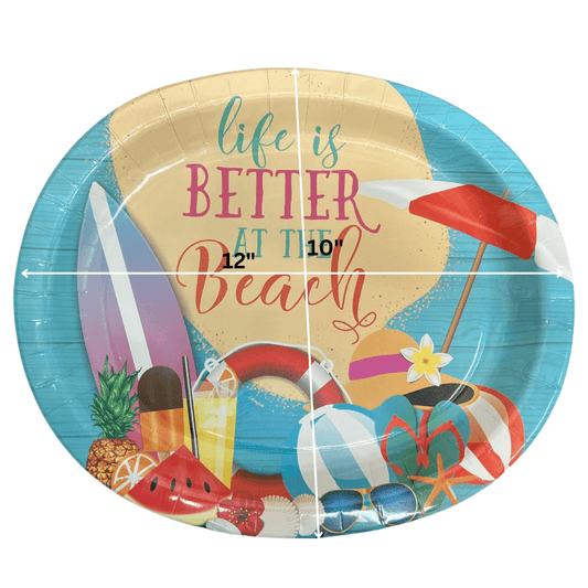 Multicolor Paper Beach-party Oval 10" x 12" Plates:10CT