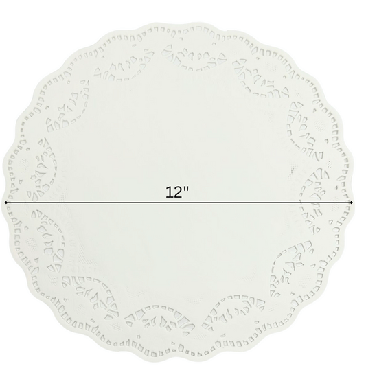12" White Lace Paper Doilies for Cake, Food & Dessert
