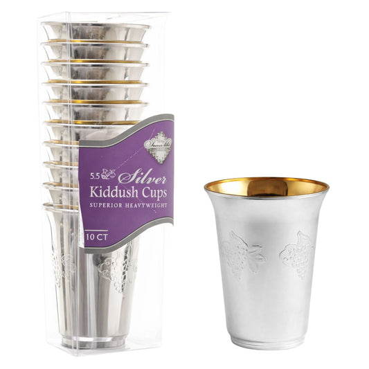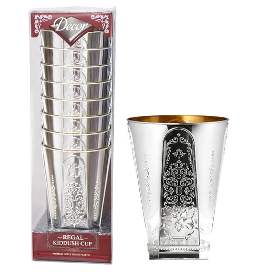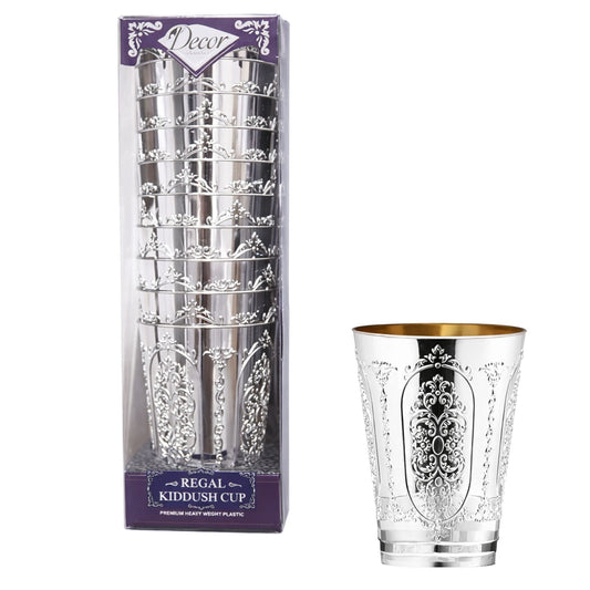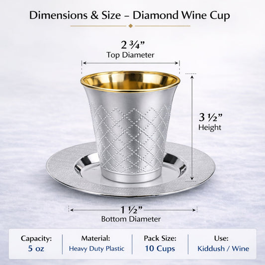 5oz Plastic kiddish Wine Cup and Saucer Set Silver Decor Diamond