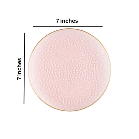 Organic Hammered 7" Pink with Gold Rim Appetizer/Dessert Plates