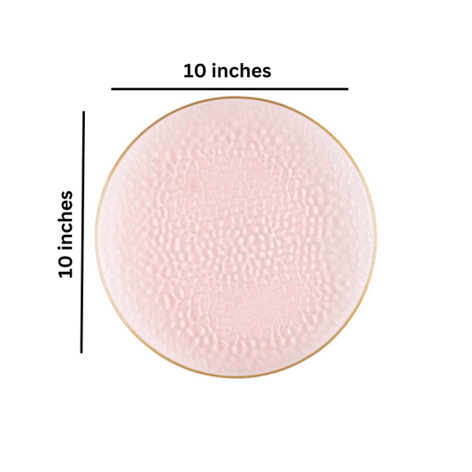 Organic Hammered 10" Pink with Gold Rim Disposable Plastic Dinner Plate