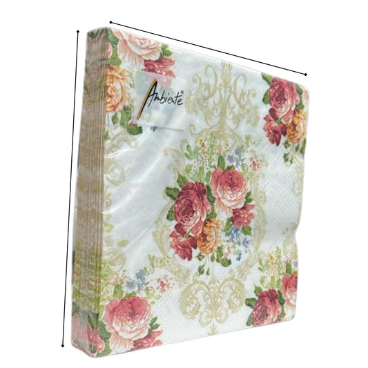 Ambiente 13" x 13" 3-Ply Rose Floral Tissue Napkins: 20 Count