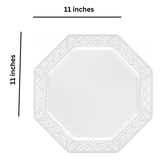 Lillian 11" Plate White Lacetagon Plastic