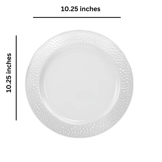 Pebbled 10.25" White Rim Plastic Dinner Plate