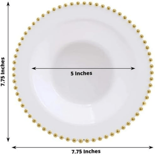 Beaded 14oz White & Gold EXTRA Heavyweight Plastic Bowl