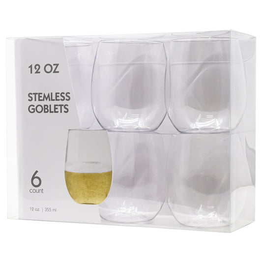 12oz Stemless Clear Wine Glasses Tumbler Disposable Plastic