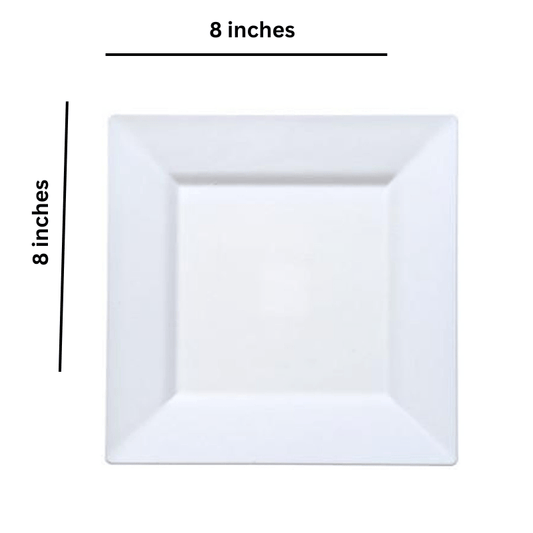 8" White Plates Square Plastic Dinner