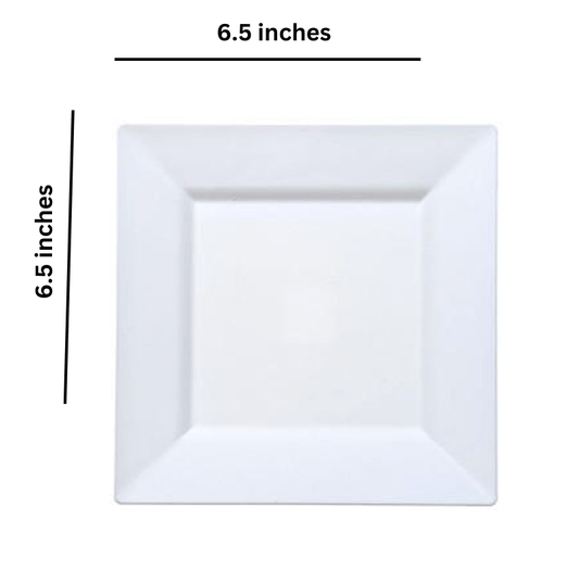 6.5" White Plates Square Plastic Dinner