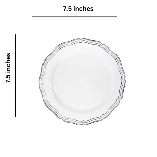 Aristocrat 7.5" White & Silver Plastic Appetizer/Dessert Plate 10 Pack