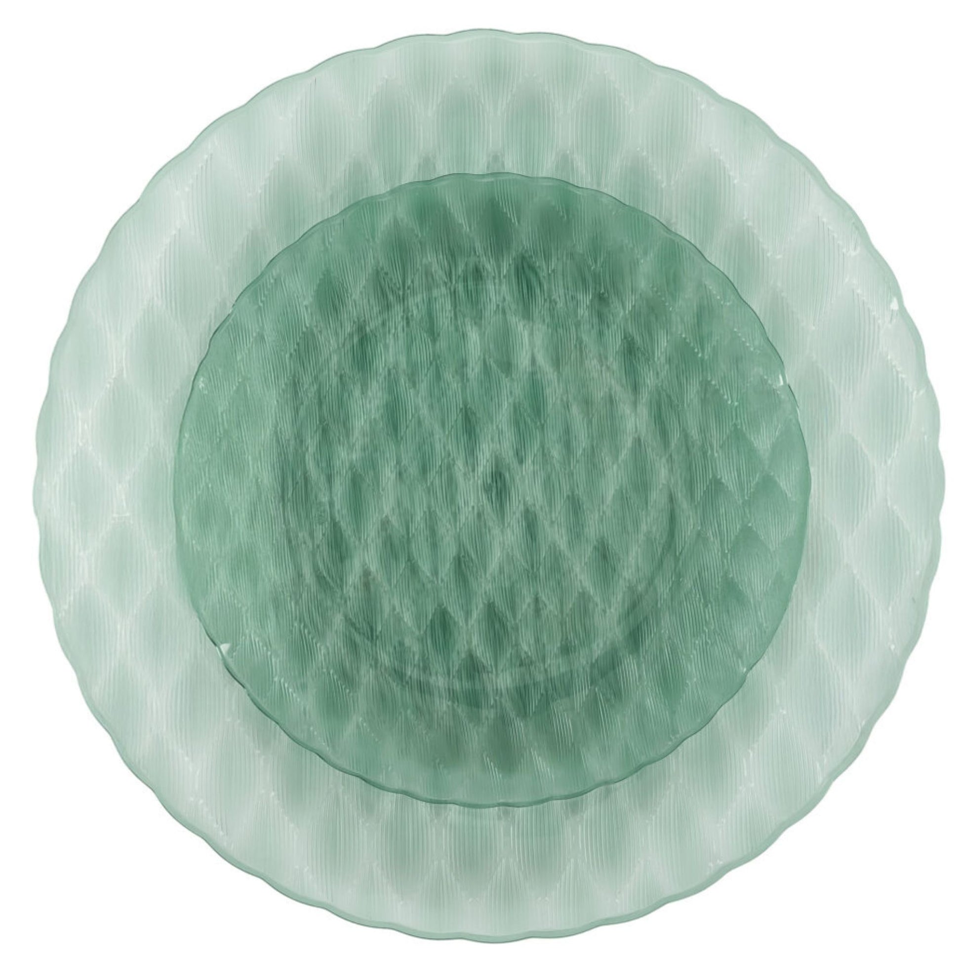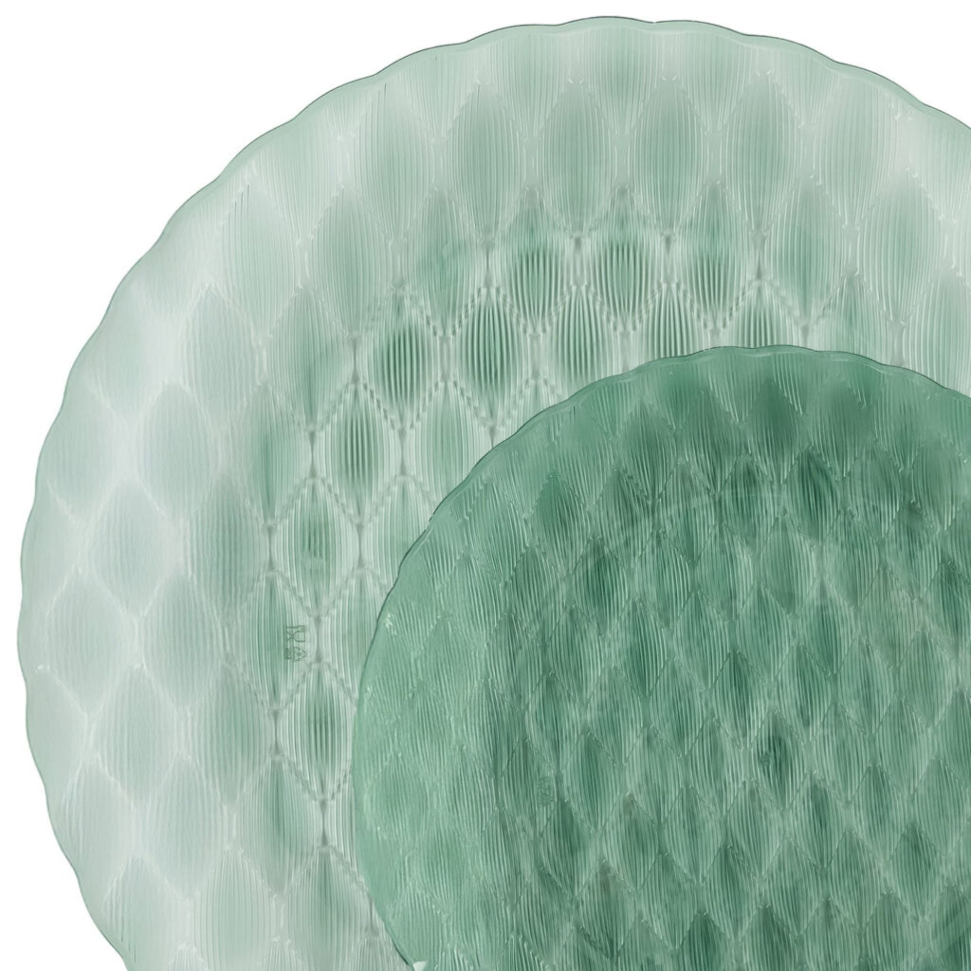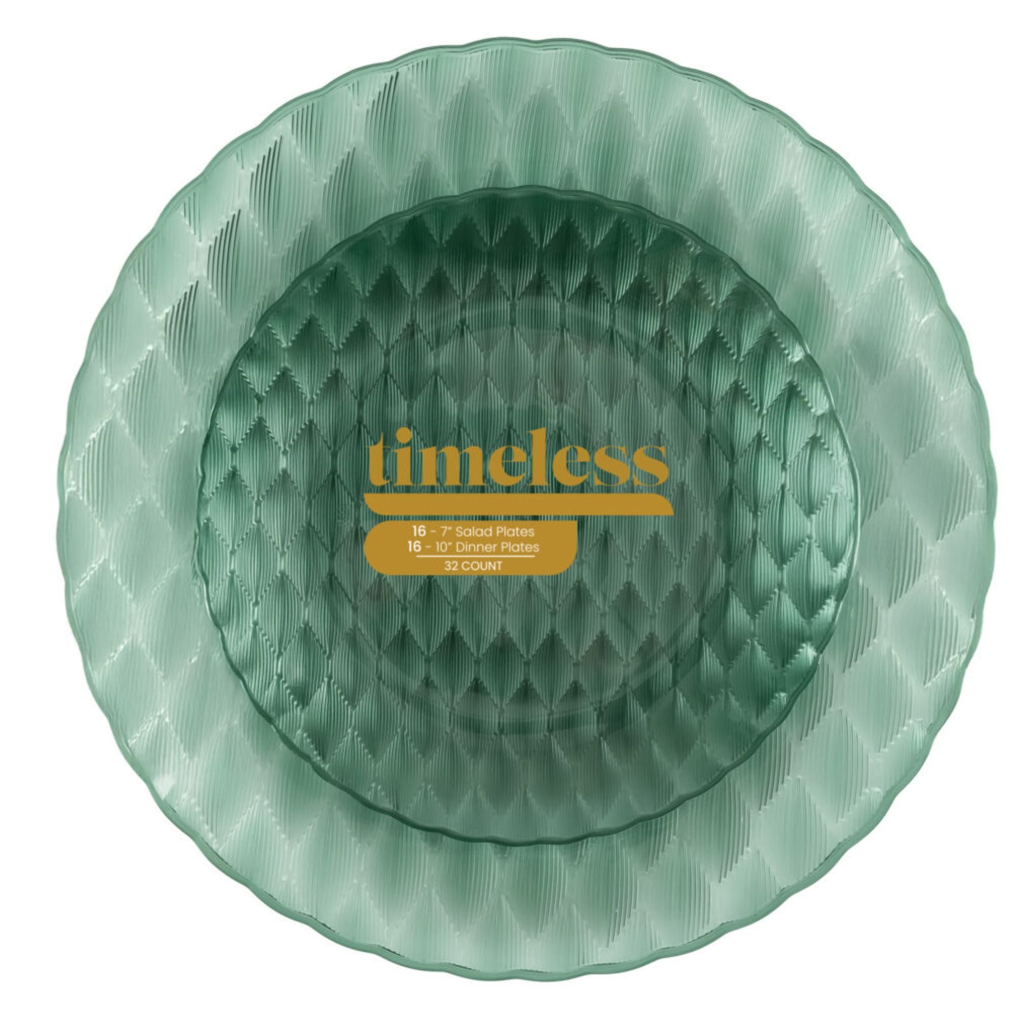 Create a sophisticated and refreshing table setting with the Timeless Collection Green Disposable Plates Combo Set. Featuring a beautiful clear green finish with an elegant textured glass-style pattern, these plates deliver the upscale appearance of real glass with the convenience of disposable use. This 32-piece set includes 16 large 10" dinner plates and 16 smaller 7" salad or dessert plates, making it perfect for hosting larger gatherings and special celebrations. Crafted from durable, heavyweight plastic, these plates combine elegance, durability, and convenience for effortless entertaining.