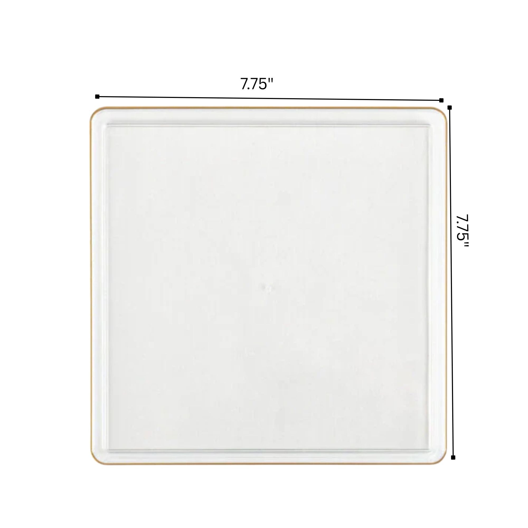 The Edge Collection 7.75" Transparent White with Gold Rim Square Plastic Plates
