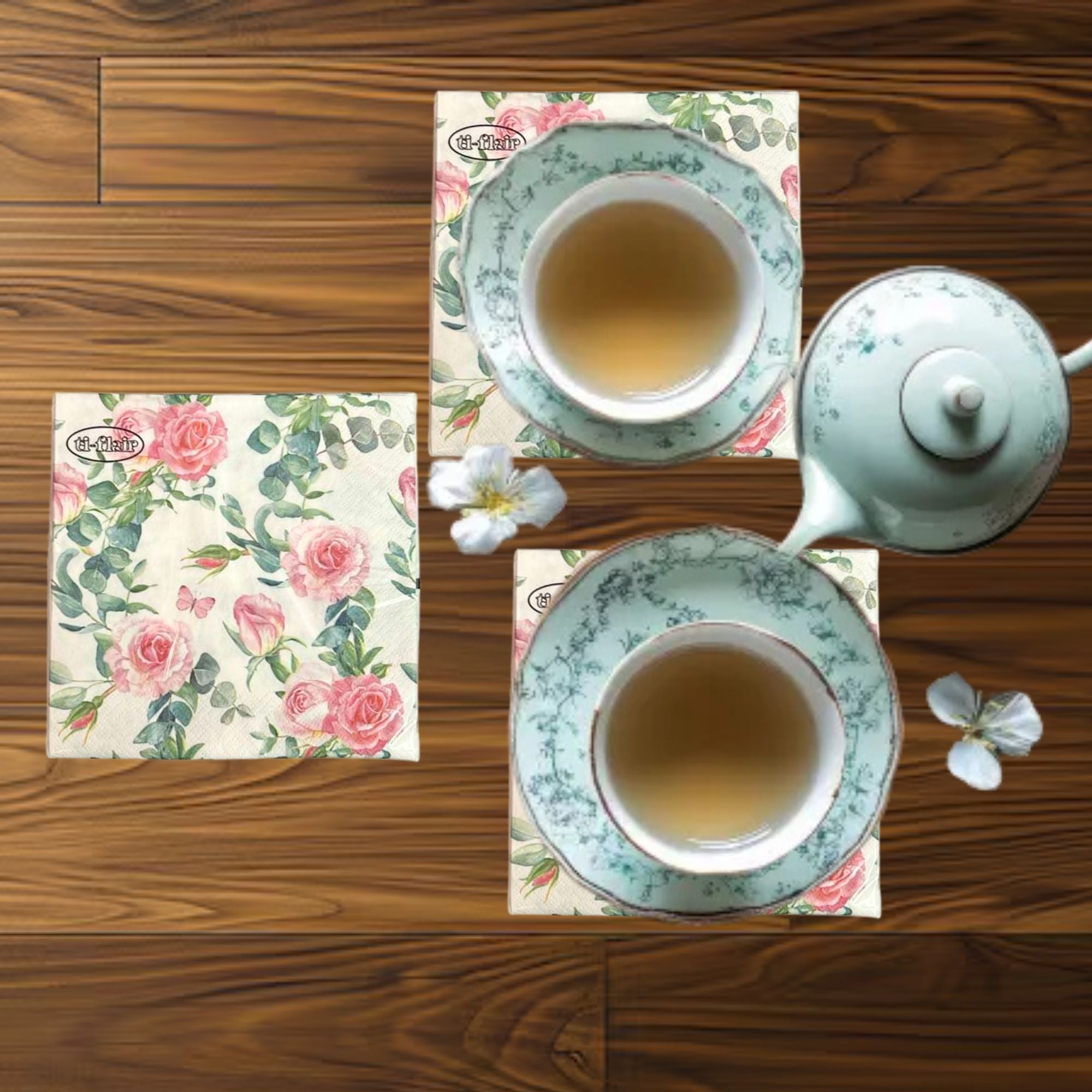 13" x 13" 3-Ply Premium Tissue Napkins – Pink Rose & Greenery Design: 20 Count