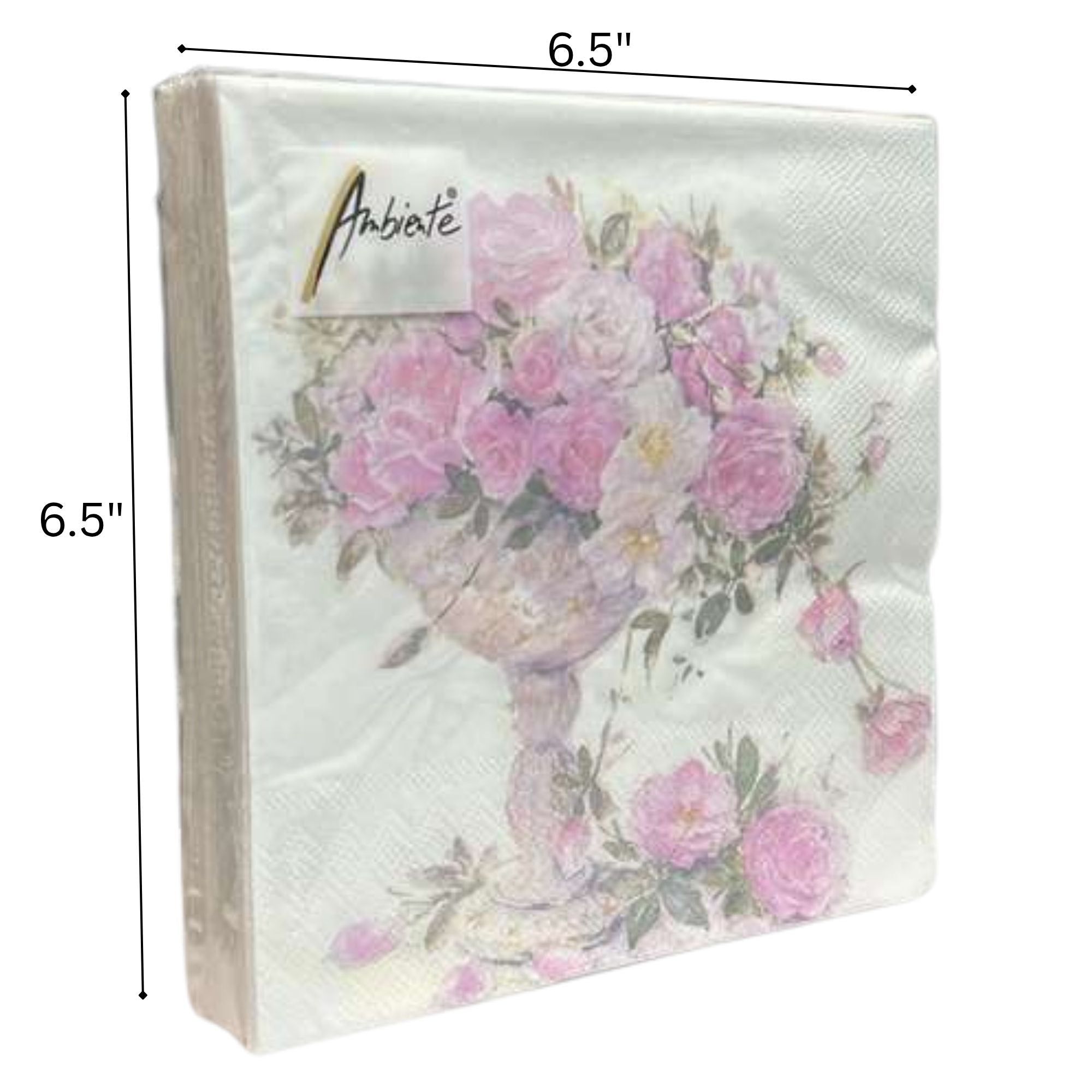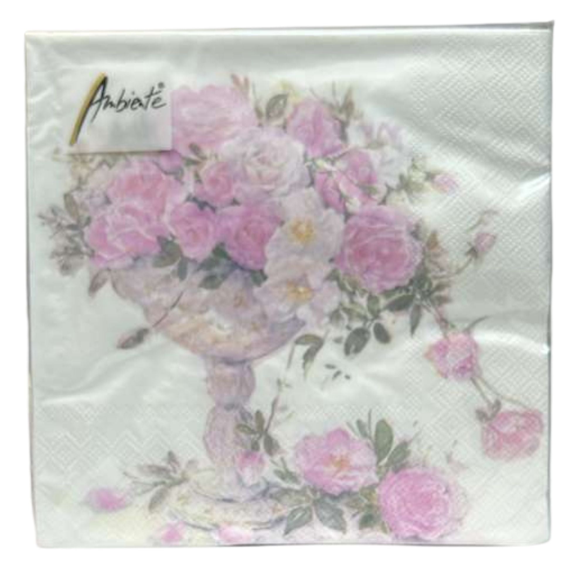 Add elegance to your table with these beautifully designed 13" x 13" 3-ply tissue napkins from Ambiente Europe. Featuring a delicate arrangement of soft pink roses in a classic vase, the design brings a romantic and refined touch to any occasion. Produced in the Netherlands using oxygen-bleached tissue and printed with water-based inks, these napkins offer both quality and eco-friendly craftsmanship. Ideal for parties, tea settings, brunches, and celebrations. Please note: not intended for direct food packaging.