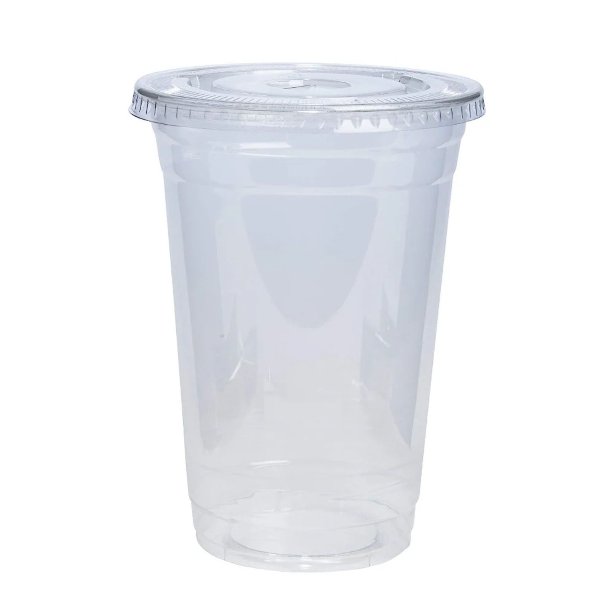20oz Plastic Clear PET Cups With Flat Lid & Straw, for All Kinds of Beverages