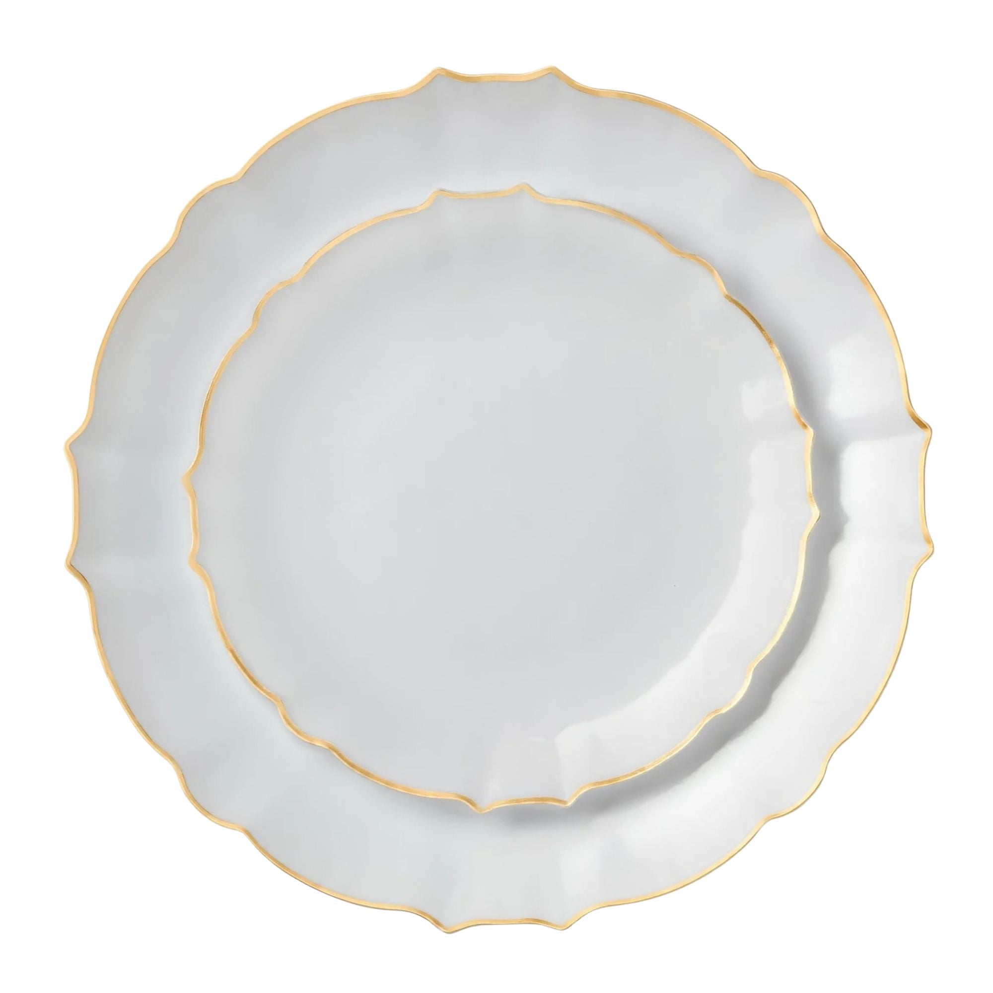 10.25"&7.5" White and Gold Round Disposable Plastic Plates COMBO Set-Luxe