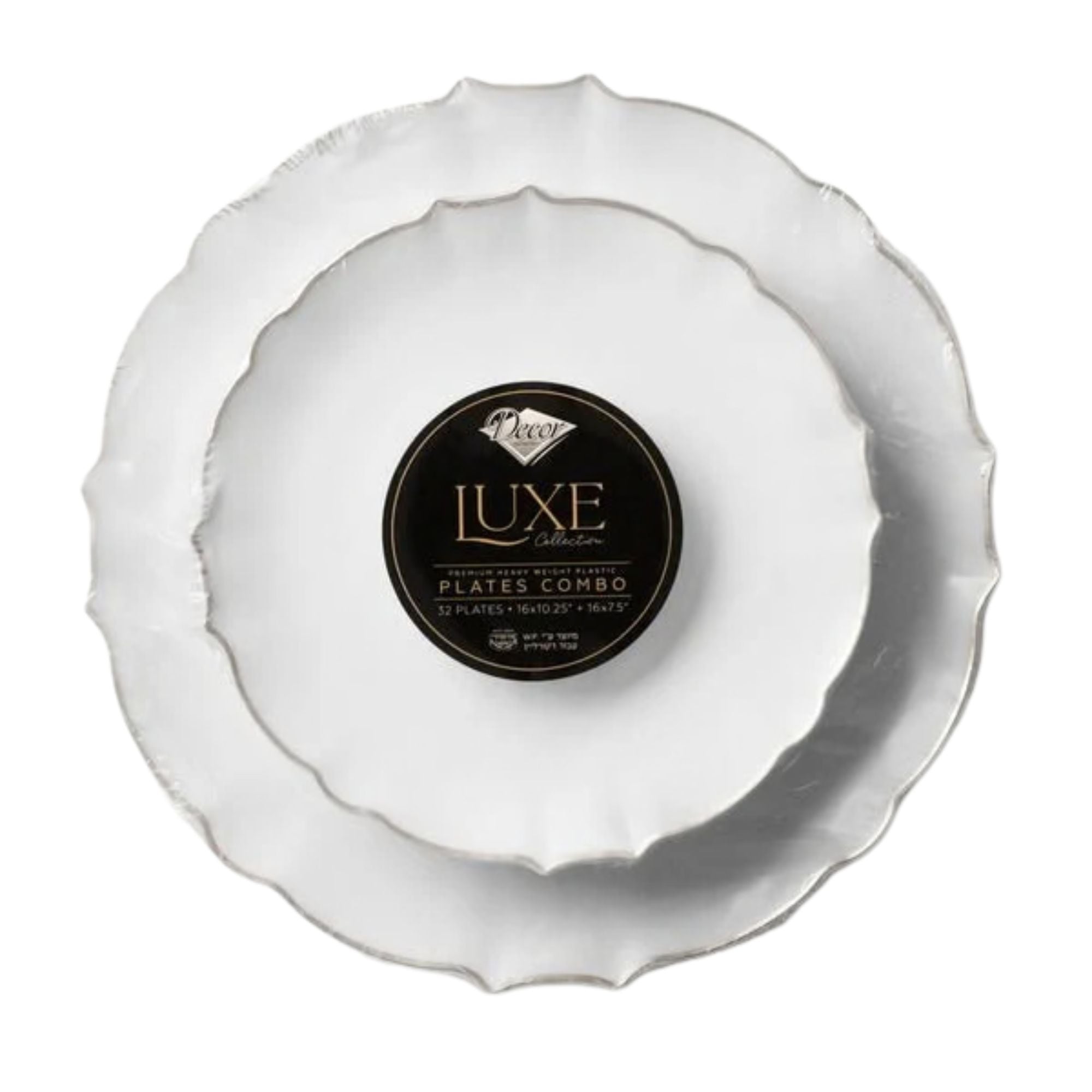 Elevate your dining experience with the COMBO SET 10.25" & 7" White and Silver Round Plastic Dinnerware Set – Luxe. Featuring a classic white base with a sophisticated silver trim, this set brings timeless elegance and convenience to any occasion, from casual gatherings to formal celebrations.