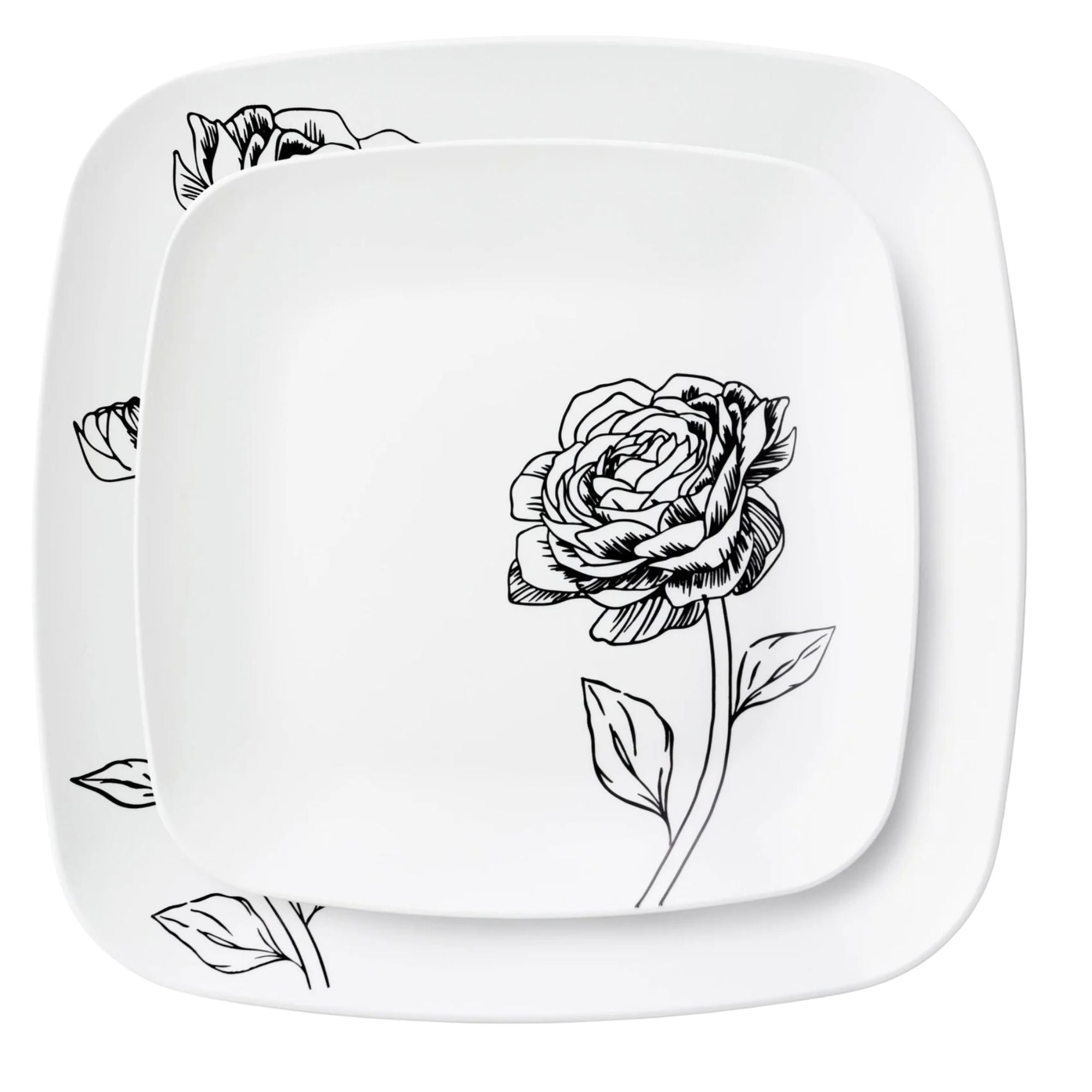 10.25"&7.25" White and Black Square Disposable Plastic Plates COMBO Set-Peony