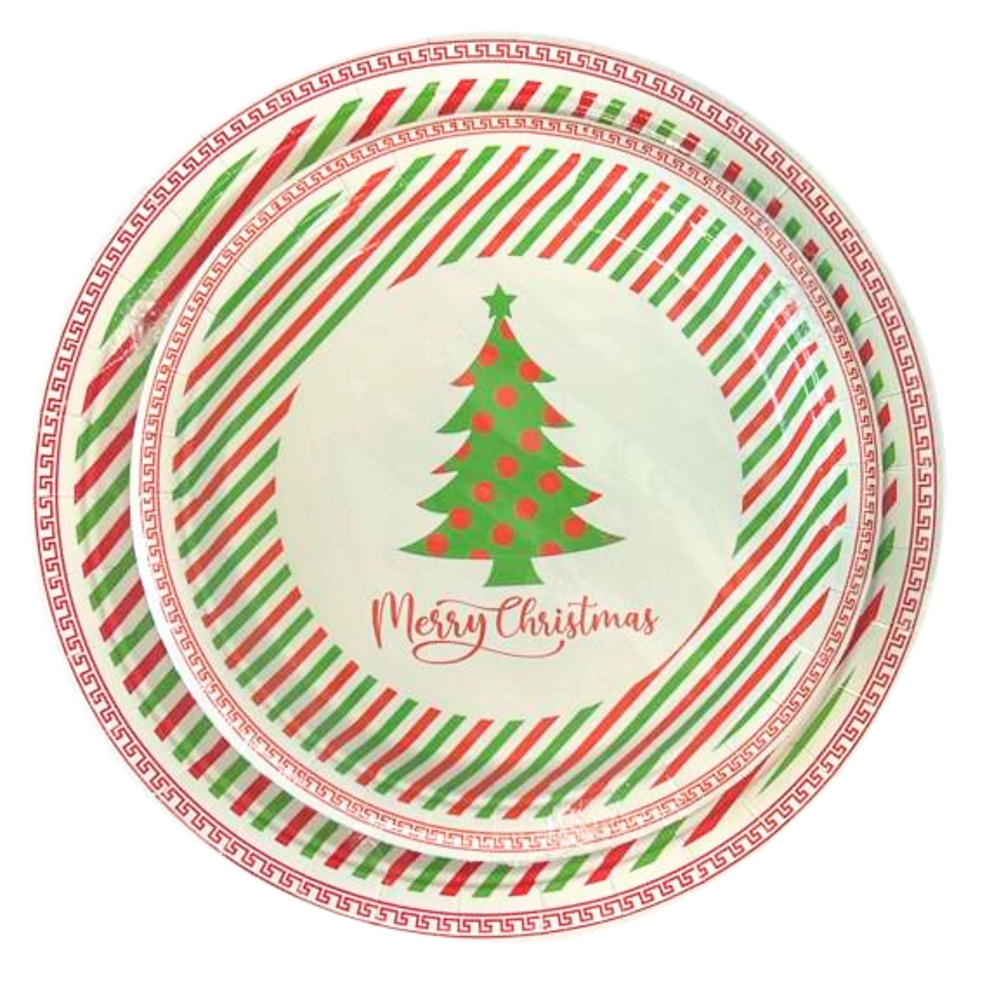 Brighten your holiday table with these Merry Christmas Tree Paper Plates. Featuring a cheerful green Christmas tree with red ornaments, festive red and green diagonal stripes, and a classic “Merry Christmas” greeting, these plates capture the joyful spirit of the season. Measuring 9 inches, they’re perfect for serving meals, desserts, or party snacks. Strong, stylish, and disposable, these plates make hosting easy and cleanup simple.