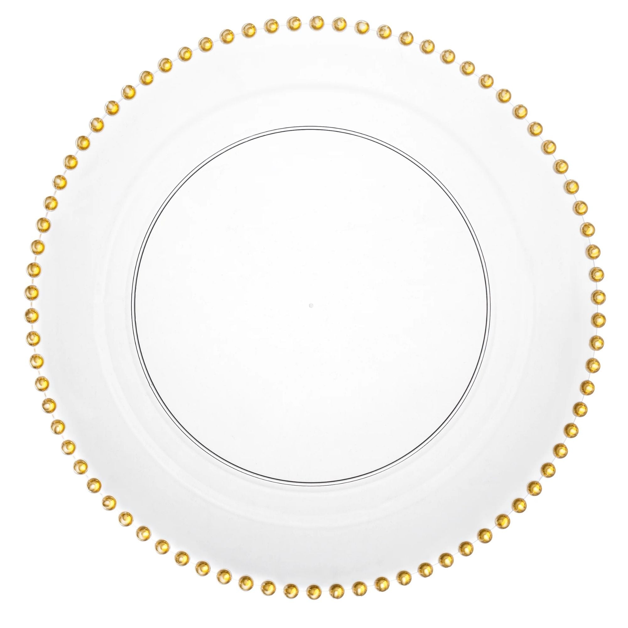 Beaded 10.25" Clear & Gold EXTRA HEAVY Weight Dinner Plates