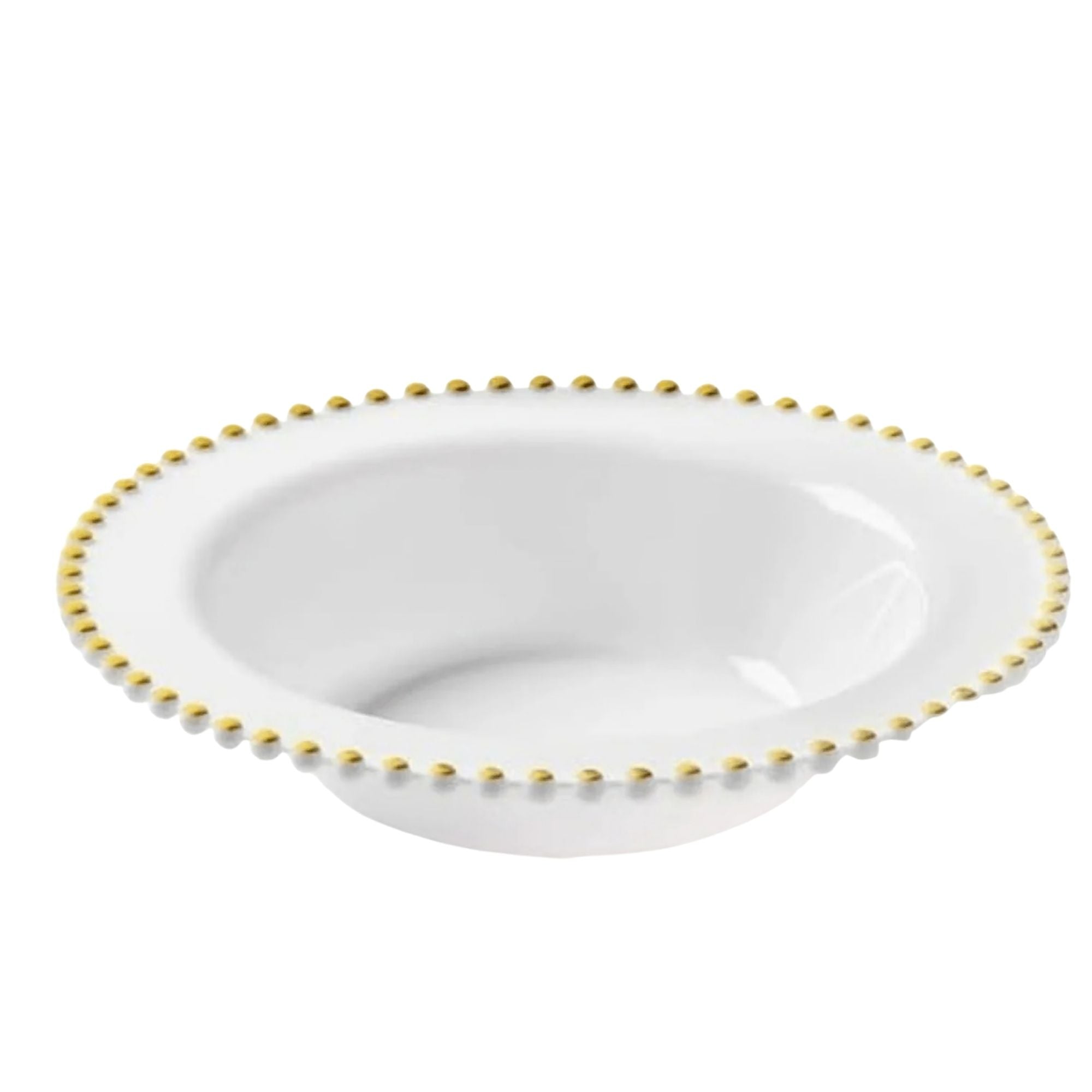 Beaded 14oz White & Gold EXTRA Heavyweight Plastic Bowl