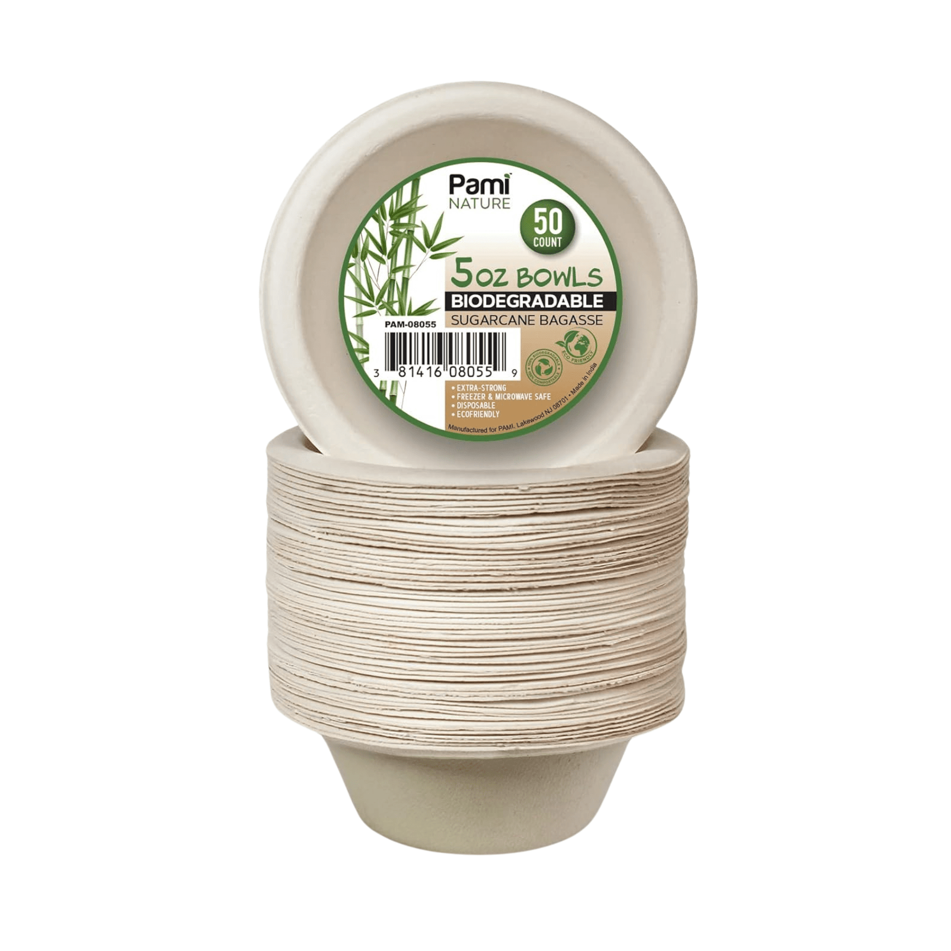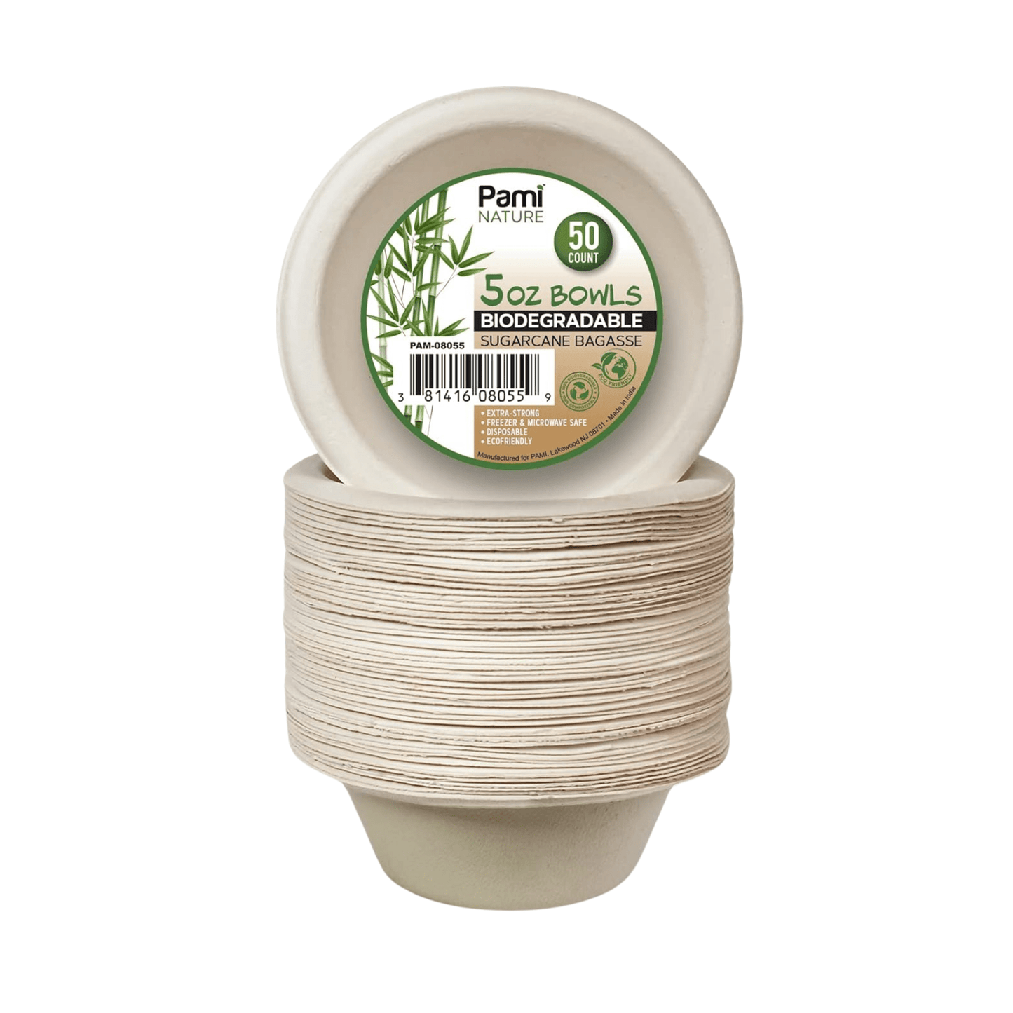Delight in serving desserts, snacks, or appetizers with our 5oz biodegradable dessert bowls. Crafted from renewable materials like sugarcane bagasse, bamboo, or PLA (polylactic acid), these eco-friendly bowls are sturdy, leak-resistant, and fully compostable. Ideal for parties, catering, or everyday use, they offer a sustainable alternative to traditional plastic or foam containers.