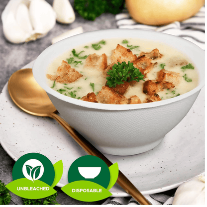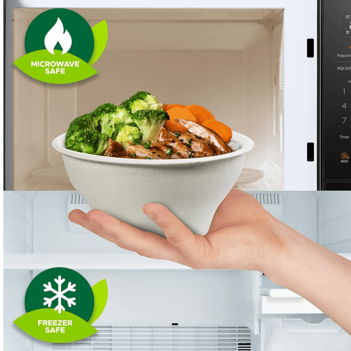 Serve small portions sustainably with 6oz biodegradable bowls crafted from renewable materials like sugarcane bagasse, bamboo, or unbleached plant fiber. These toxin-free, heavy-duty bowls are microwave- and freezer-safe, leak-resistant, and fully compostable—ideal for appetizers, snacks, sauces, or desserts at home, events, or foodservice.