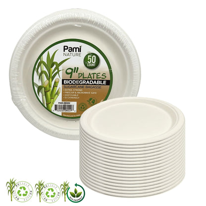 Eco‑Friendly 9″ Biodegradable Dinner Plates:50CT