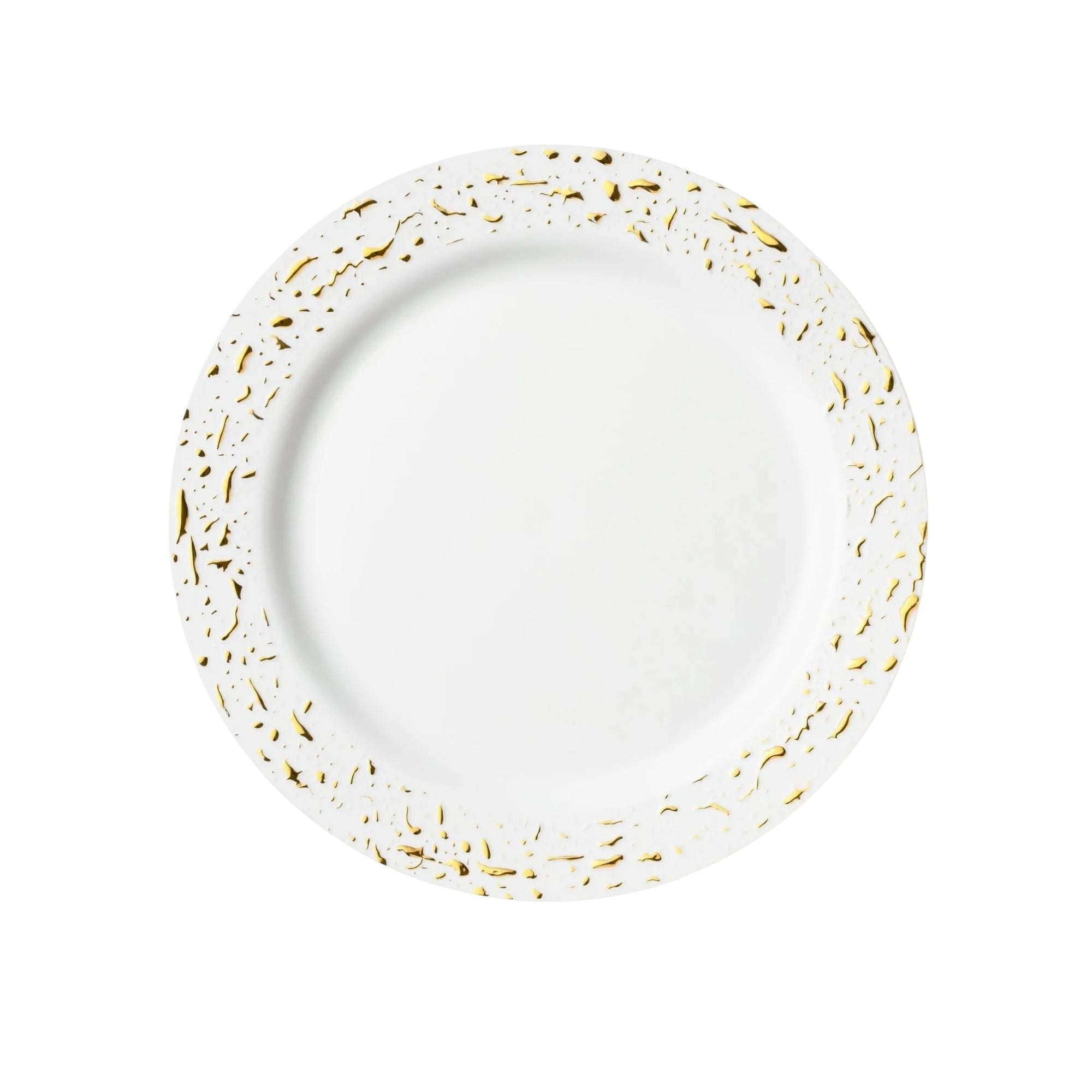 Pebbled 7" White & Gold Plastic Disposable Dessert Plate 10 Pcs