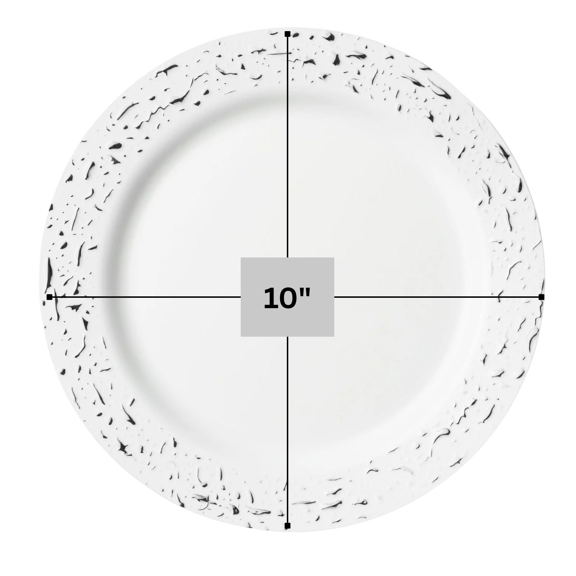 Pebbled 10" White & Silver Plastic Disposable Dinner Plate 10 Pcs